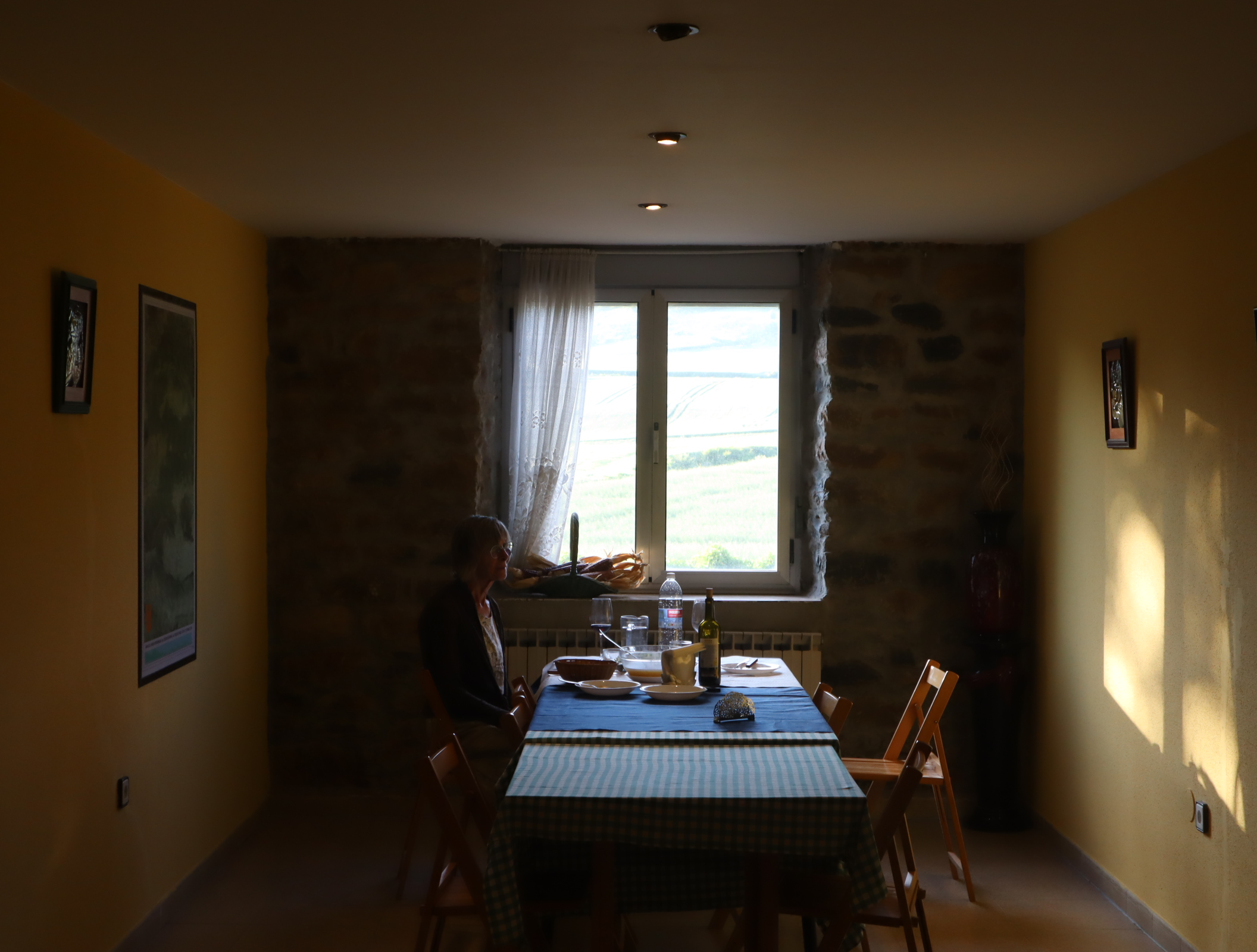 Daar worden we in de Agriturismo ontvangen door een ouder echtpaar. Ze schrikken als ze Mariette zien en vragen of ze een dokter moeten bellen. Niet nodig, vindt Mariette. We gaan douchen en even later is het eten in een aparte kamer op tafel gezet: een enorme salade, sopa met spaghetti erin, frites met gebakken ham, rode wijn. Bij het hoofdgerecht voelt Mariette zich niet lekker en verdwijnt naar onze kamer. Ze vraagt om ijsblokjes om op haar nu zeer pijnlijke pols te binden, ik ga ze voor haar regelen. Samen maken we nog het verslag af en gaan dan slapen.